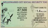 47,535 millionaires received Social Security benefits in 2010, totaling $1.438 billion. Median income of all recipients over 65 is $26,000.